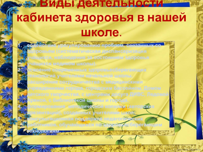 Это сайт презентаций, где можно хранить и обмениваться своими презентациями, докладами, проектами, шаблонами в формате PowerPoint с другими пользователями. Мы помогаем школьникам, студентам, учителям, преподавателям хранить и обмениваться учебными материалами.