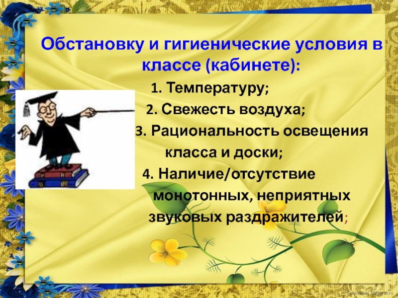 Гигиенические условия в классе (кабинете);