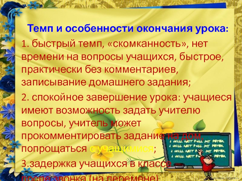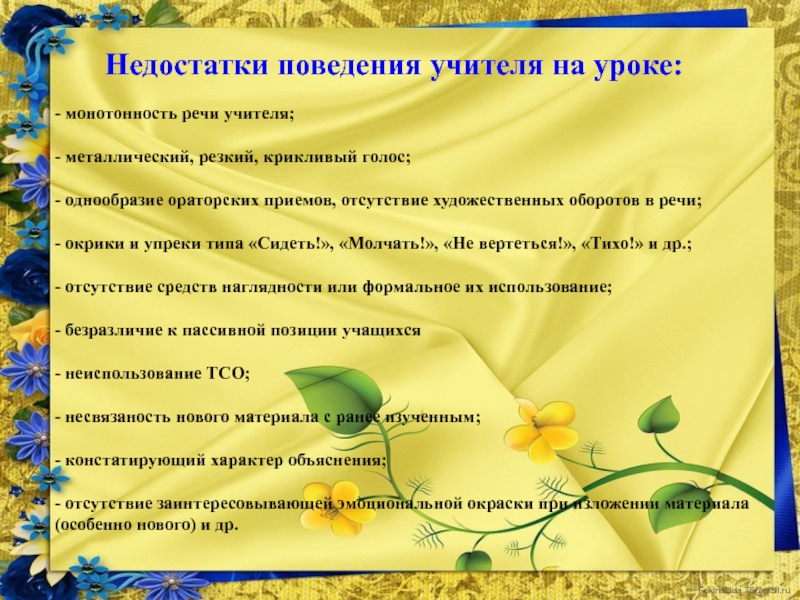 Недостатки поведения учителя на уроке: