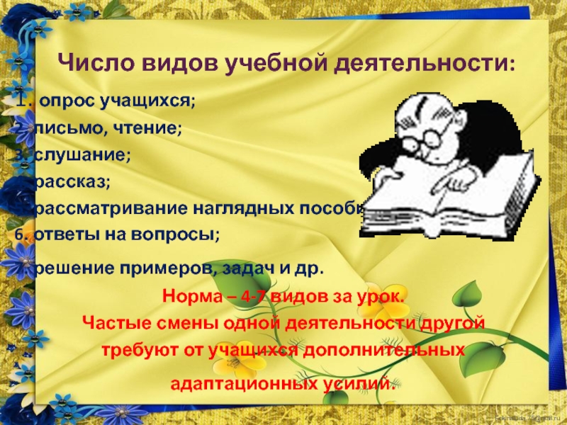 Средняя продолжительность и частота чередования различных видов учебной деятельности
