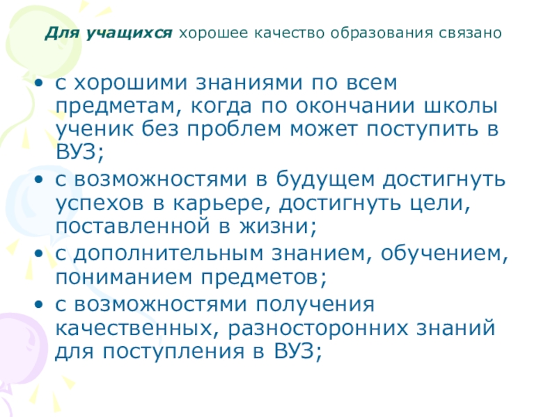 с возможностями получения качественных, разносторонних знаний для поступления в ВУЗ;