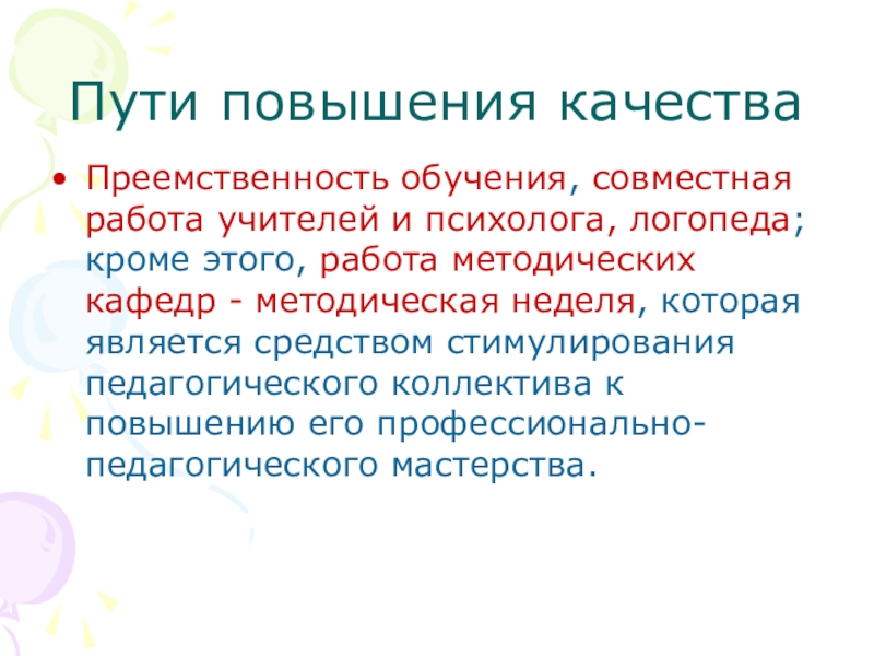 Преемственность обучения, совместная работа учителей и психолога, логопеда; кроме
