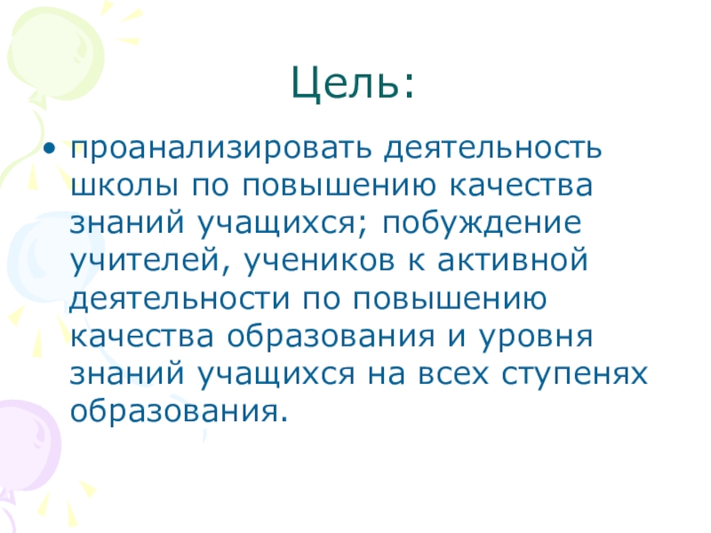 проанализировать деятельность школы по повышению качества знаний учащихся; побуждение учителей, учеников