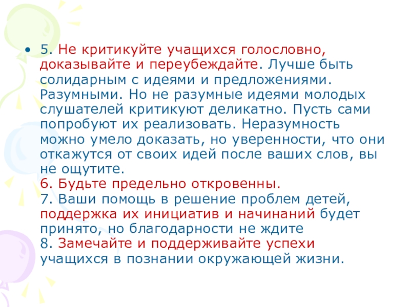 5. Не критикуйте учащихся голословно, доказывайте и переубеждайте. Лучше быть солидарным