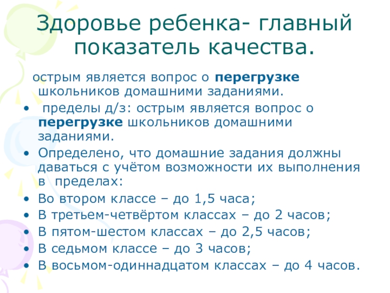 пределы д/з: острым является вопрос о перегрузке школьников домашними заданиями.