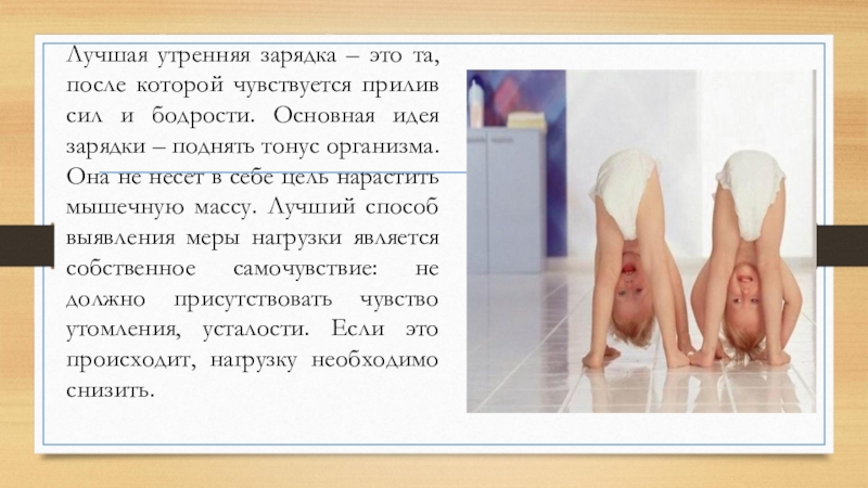Слайд 10Лучшая утренняя зарядка – это та, после которой чувствуется прилив сил