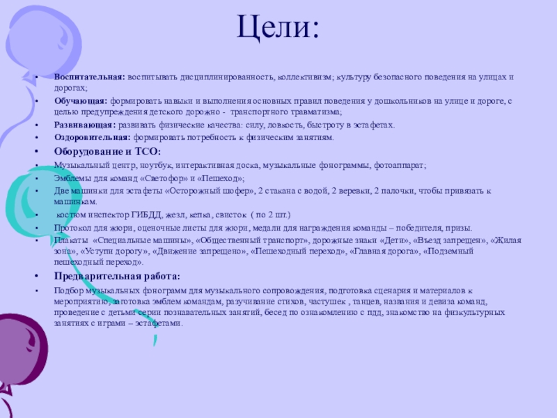 Воспитательная: воспитывать дисциплинированность, коллективизм; культуру безопасного поведения на улицах и дорогах;