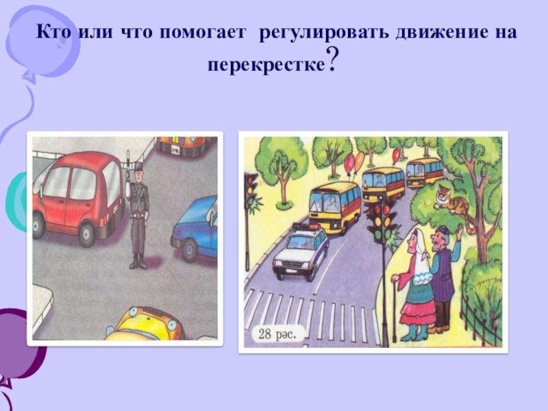 Слайд 8Кто или что помогает регулировать движение на перекрестке?