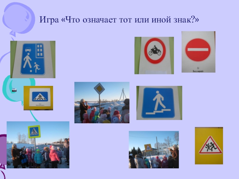 Плакаты «Специальные машины», «Общественный транспорт», дорожные знаки «Дети», «Въезд запрещен», «Жилая зона», «Уступи дорогу», «Движение запрещено», «Пешеходный переход», «Главная дорога», «Подземный пешеходный переход».