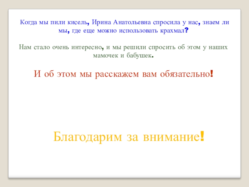 и мы получили белый, рассыпчатый, скрипучий крахмал!!!
