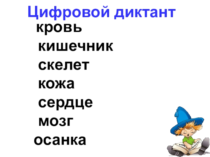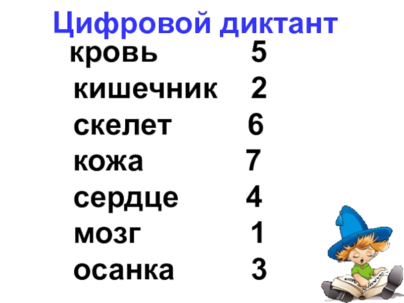 Цифровой диктант кровь кишечник скелет кожа сердце мозг осанка