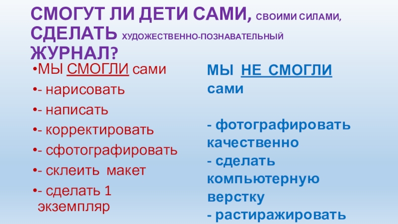 МОГУТ ЛИ ДЕТИ САМИ СОЗДАТЬ КЛАССНЫЙ ХУДОЖЕСТВЕННО-ПОЗНАВАТЕЛЬНЫЙ ЖУРНАЛ ?