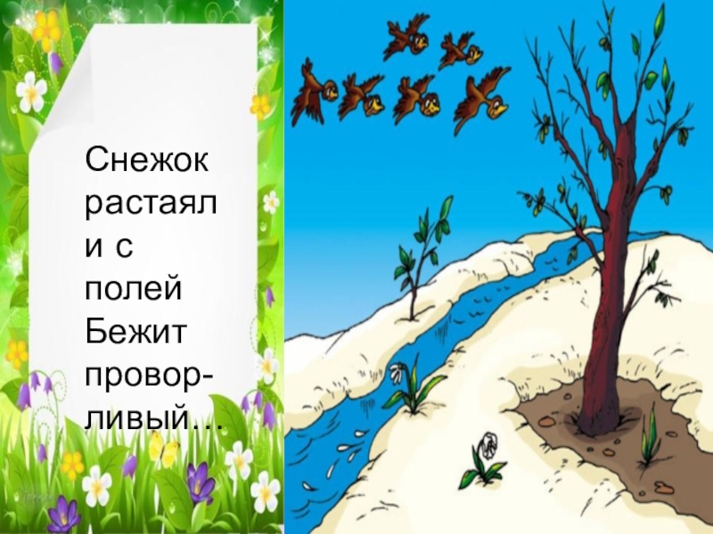 Слайд 8Тает снежок, ожил лужок. День прибывает. Когда это бывает?
