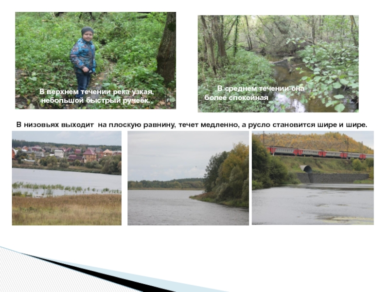 В низовьях выходит на плоскую равнину, течет медленно, а русло становится шире и шире.