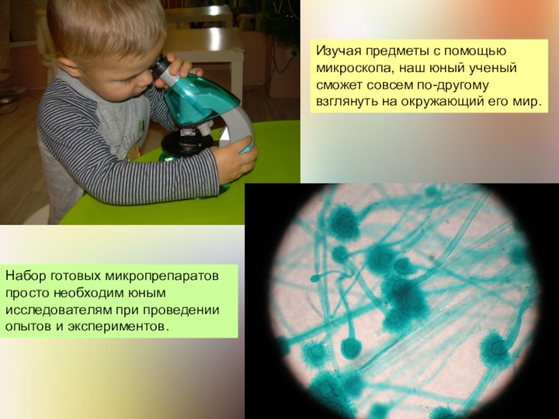 Слайд 4Набор готовых микропрепаратов просто необходим юным исследователям при проведении опытов и