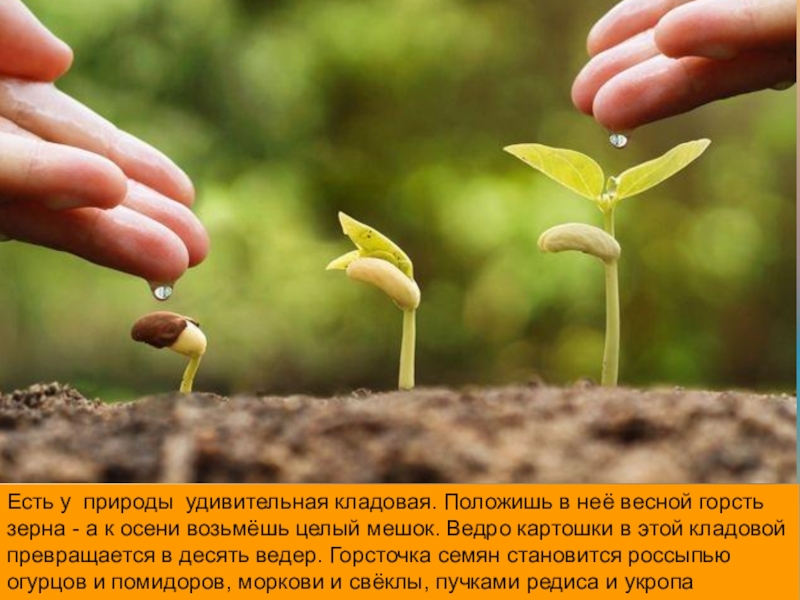 Слайд 8Есть у природы удивительная кладовая. Положишь в неё весной горсть зерна