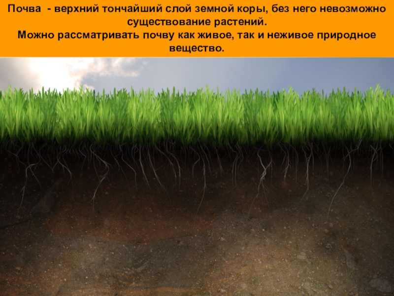 Слайд 6Почва - верхний тончайший слой земной коры, без него невозможно существование растений.