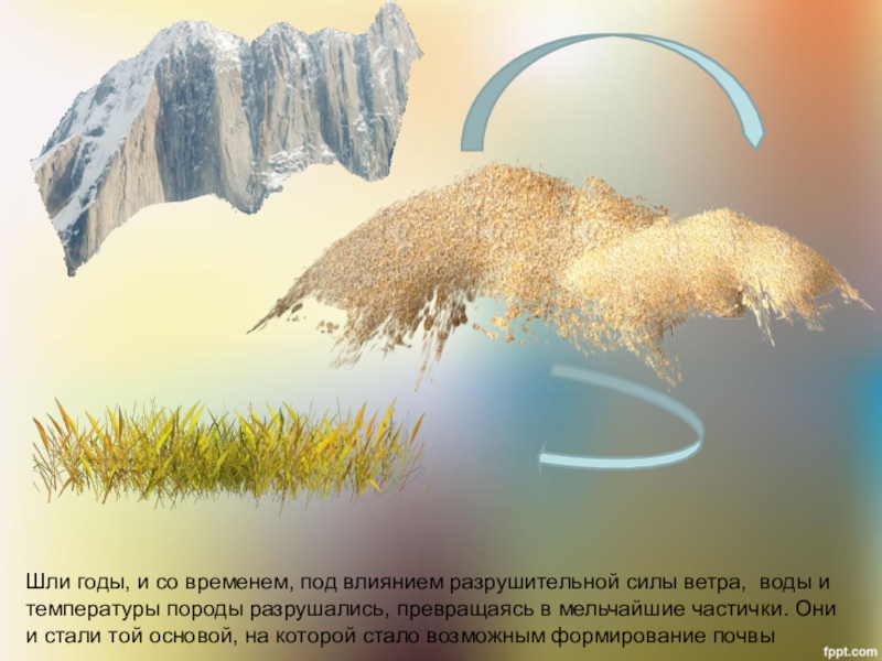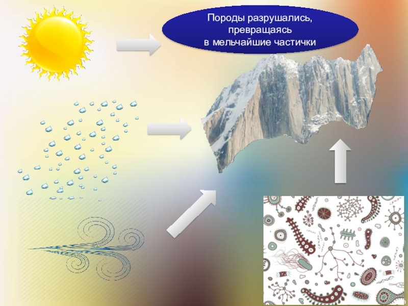 Слайд 13Породы разрушались, превращаясь в мельчайшие частички
