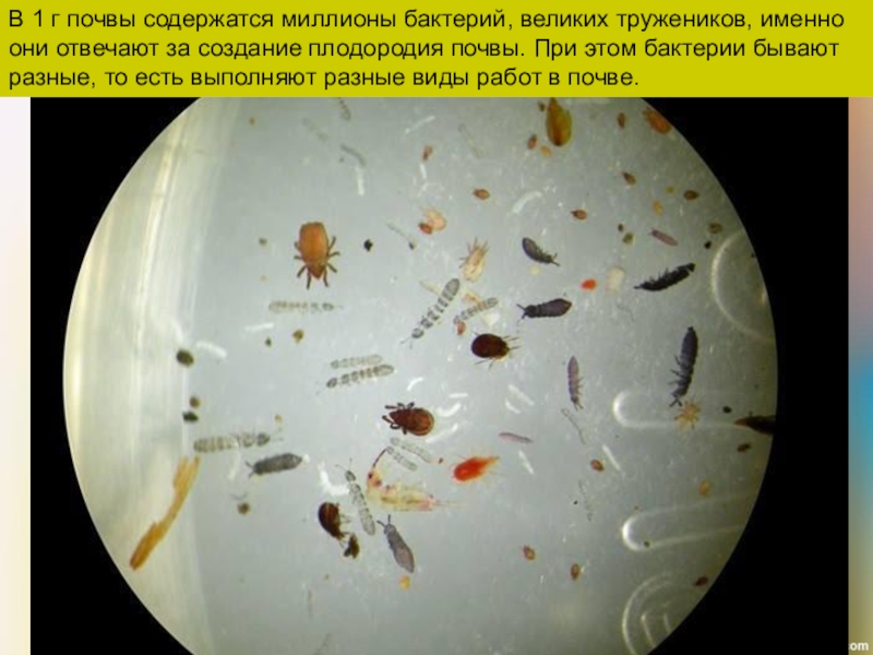 Слайд 21В 1 г почвы содержатся миллионы бактерий, великих тружеников, именно они