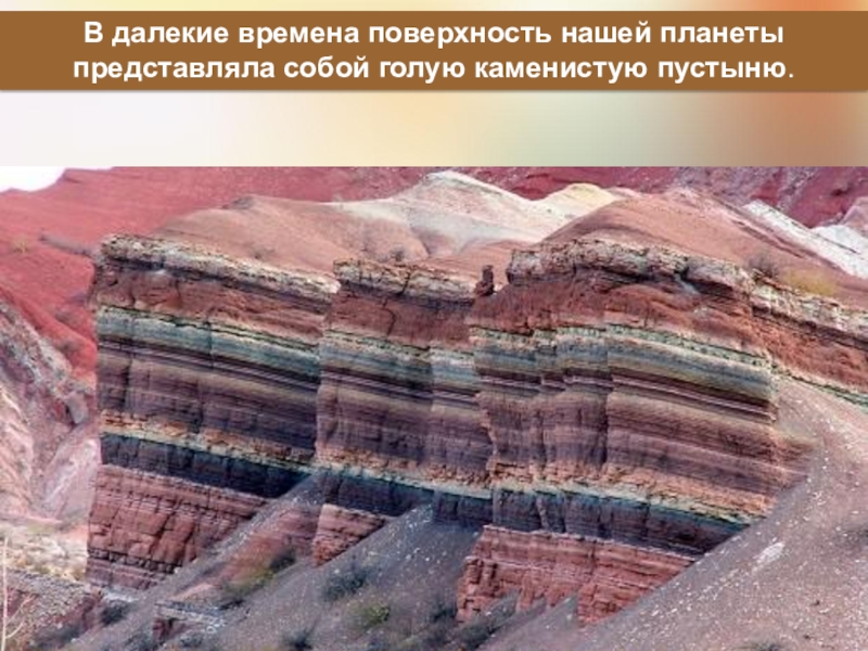 Слайд 11В далекие времена поверхность нашей планеты представляла собой голую каменистую пустыню.