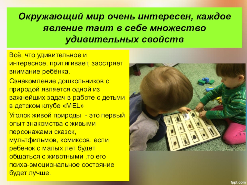Ознакомление дошкольников с природой является одной из важнейших задач в работе с детьми в детском клубе «MEL»