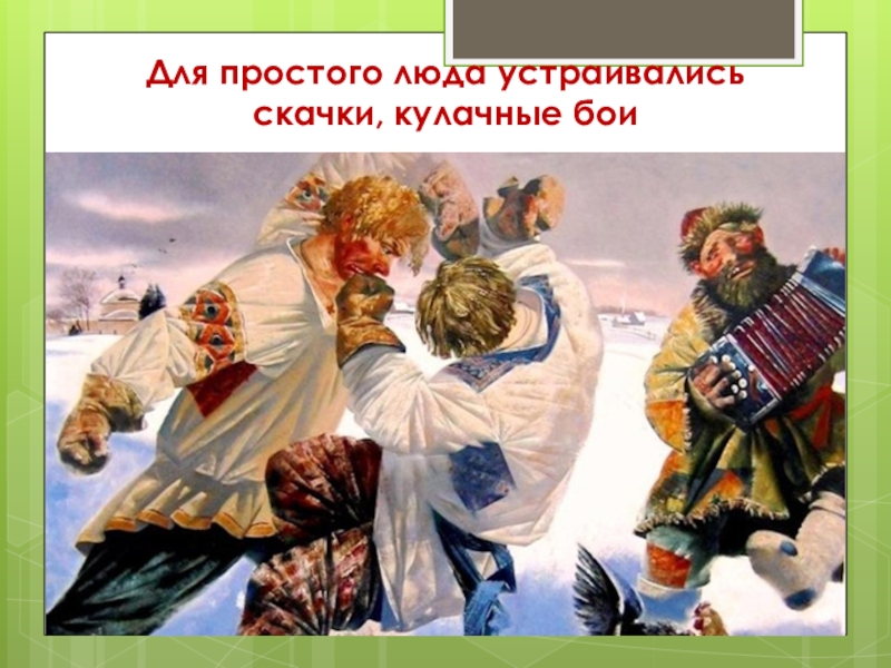 Слайд 5Для простого люда устраивались скачки, кулачные бои