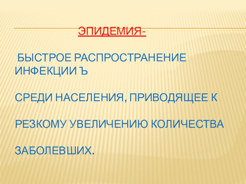 Эпидемия- быстрое распространение инфекции ъ среди населения, приводящее к резкому увеличению количества заболевших.