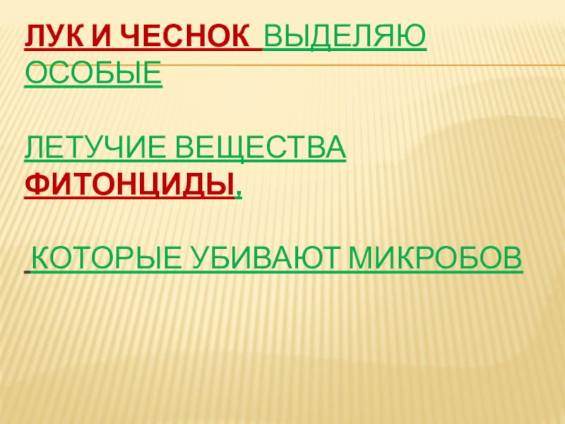 Слайд 18 Лук и Чеснок выделяю особые летучие вещества ФИТОНЦИДЫ, которые убивают микробов
