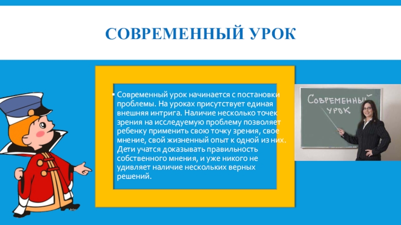 Современный урок начинается с постановки проблемы. На уроках присутствует единая