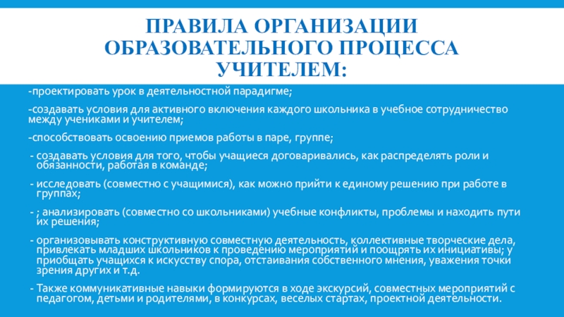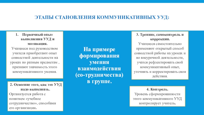 Учащиеся под руководством учителя приобретают опыт совместной деятельности на уроках по разным предметам , признают значимость этого коммуникативного умения.
