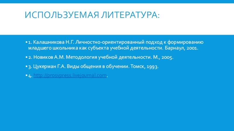 1. Калашникова Н.Г. Личностно-ориентированный подход к формированию младшего школьника как