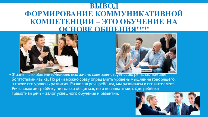 Формирование коммуникативной компетенции – это обучение на основе общения!!!!!