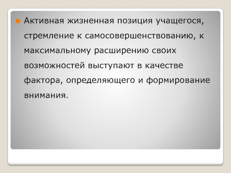 возможностей выступают в качестве фактора, определяющего и формирование внимания.