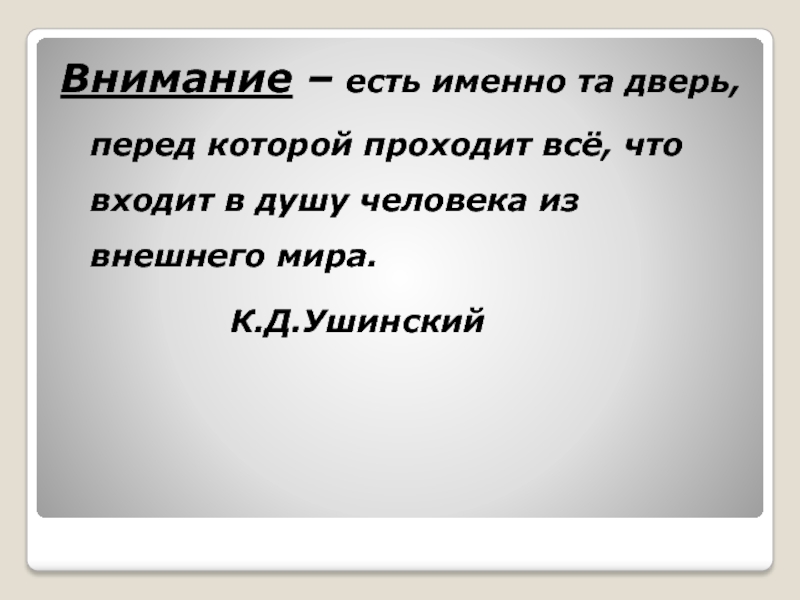 Слайд 2Внимание – есть именно та дверь, перед которой проходит всё, что