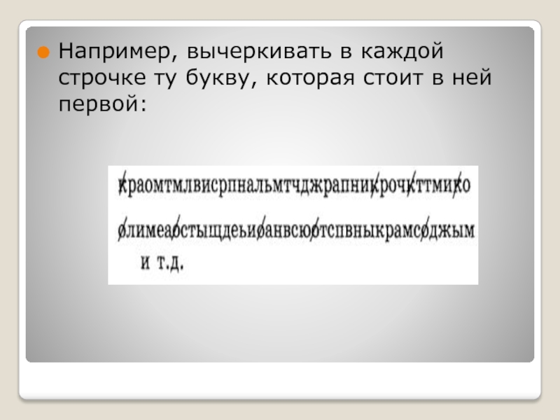 Слайд 26Например, вычеркивать в каждой строчке ту букву, которая стоит в ней