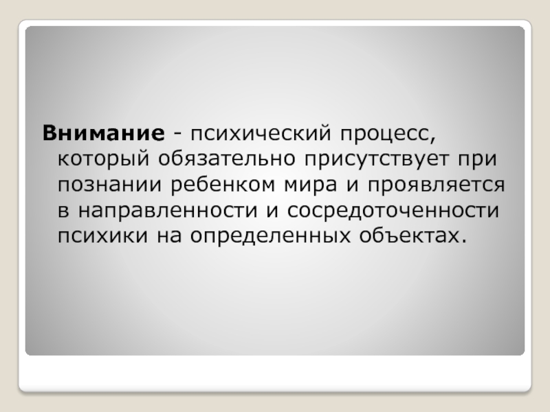 Внимание - психический процесс, который обязательно присутствует при познании ребенком мира
