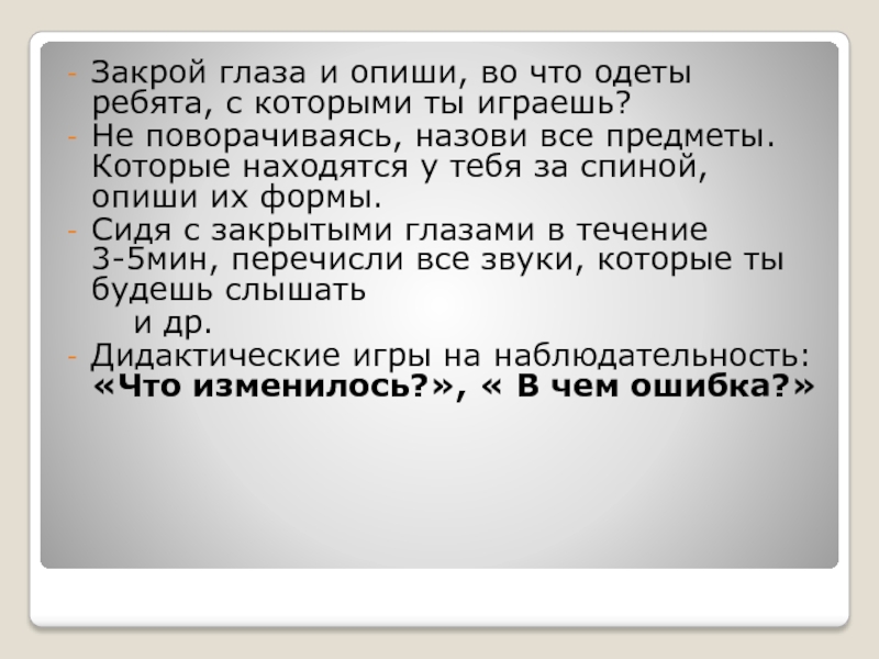 Слайд 20Закрой глаза и опиши, во что одеты ребята, с которыми ты