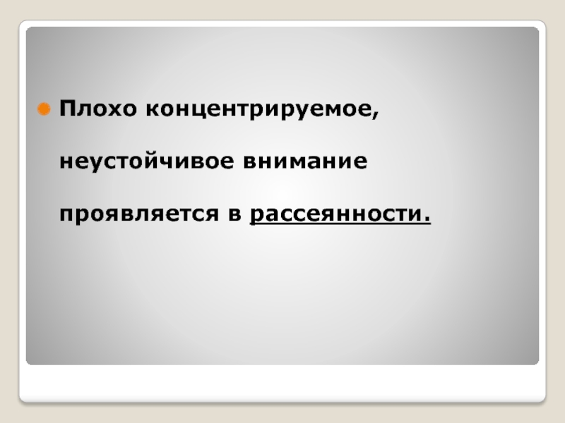 Плохо концентрируемое, неустойчивое внимание проявляется в рассеянности.