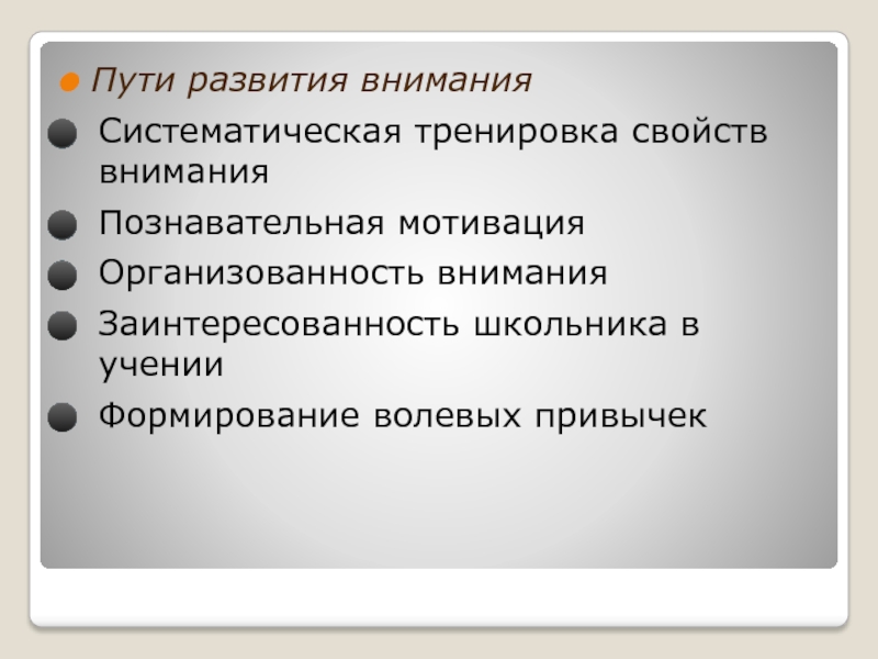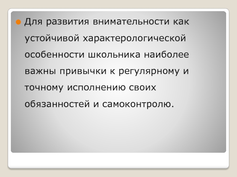 Слайд 17Для развития внимательности как устойчивой характерологической особенности школьника наиболее важны привычки
