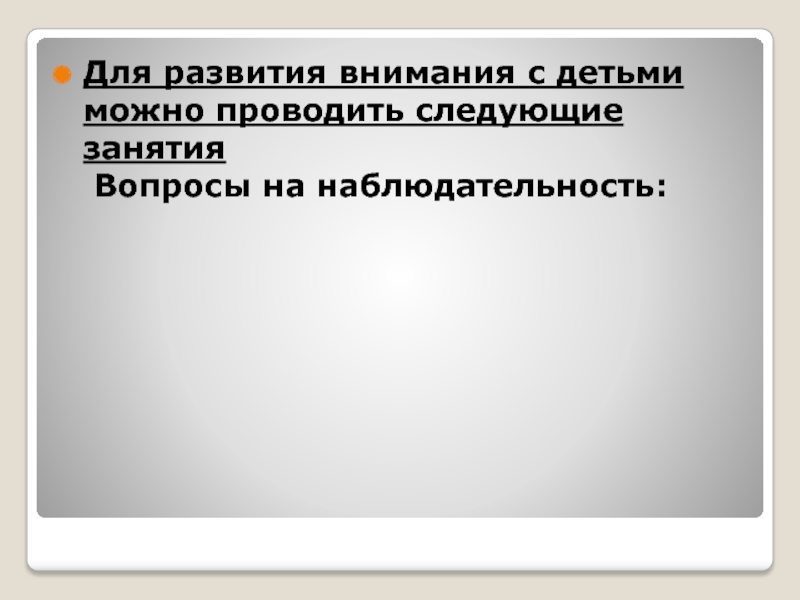 Слайд 19Для развития внимания с детьми можно проводить следующие занятия