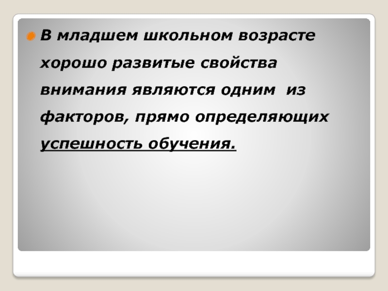 Слайд 13В младшем школьном возрасте хорошо развитые свойства внимания являются одним из