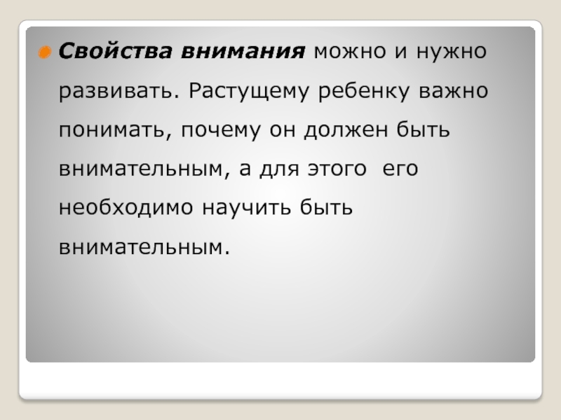 Слайд 15Свойства внимания можно и нужно развивать. Растущему ребенку важно понимать, почему