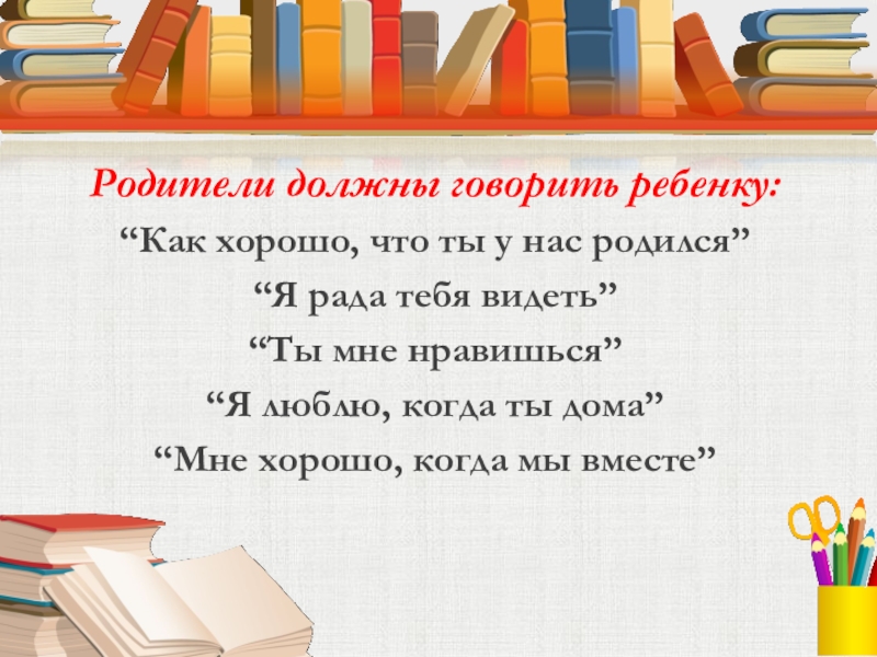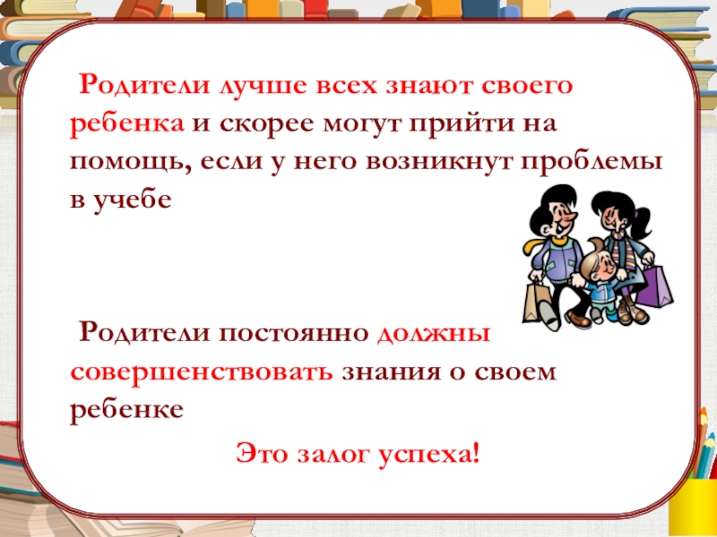 Слайд 27 Родители лучше всех знают своего ребенка и скорее могут прийти на