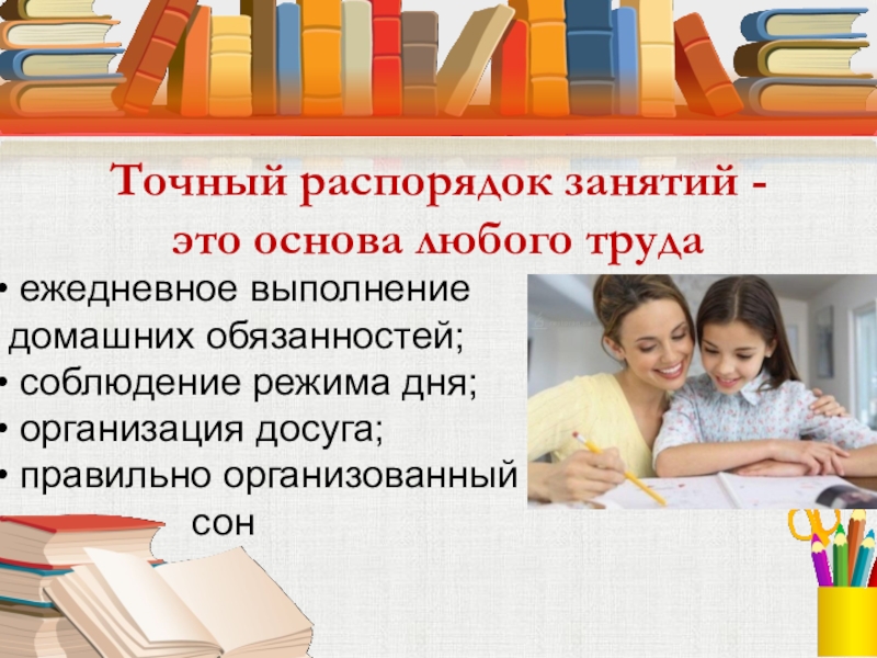 Слайд 13Очень важным моментом является выработка привычки к неукоснительному выполнению домашних заданий: