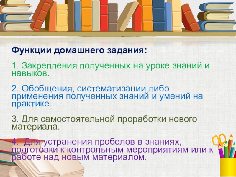 «Уроки на дом имеют большое значение. Правильно организованные, они приучают к самостоятельной работе, воспитывают чувство ответственности, помогают овладевать знанием, навыками.»