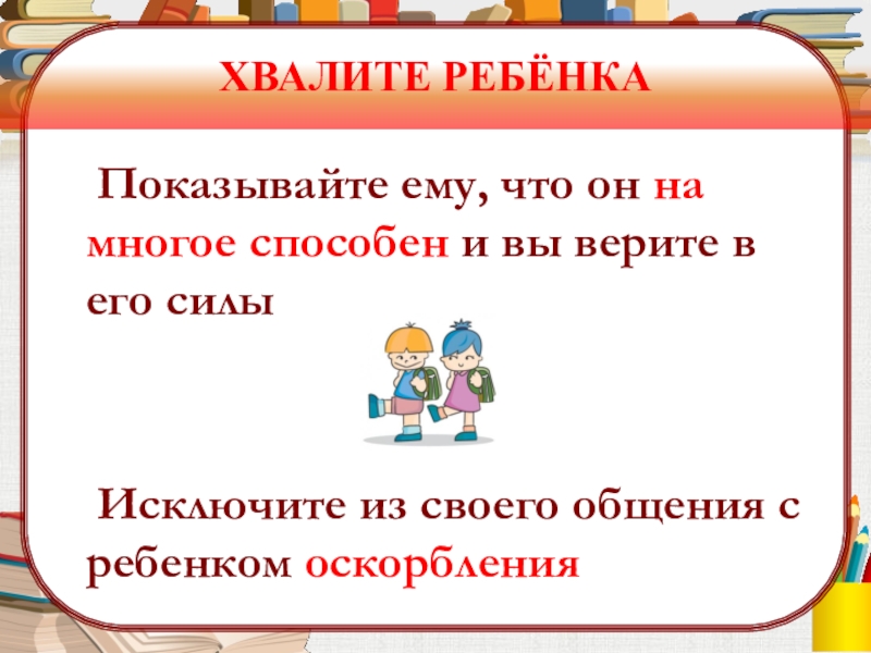 Слайд 26ХВАЛИТЕ РЕБЁНКА