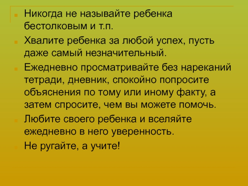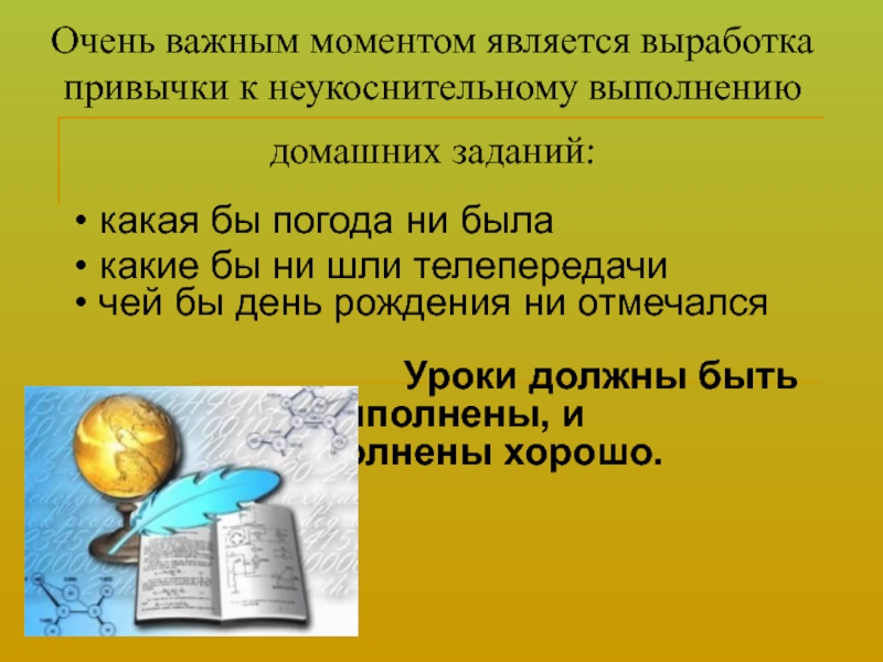 Уроки должны быть выполнены, и выполнены хорошо.