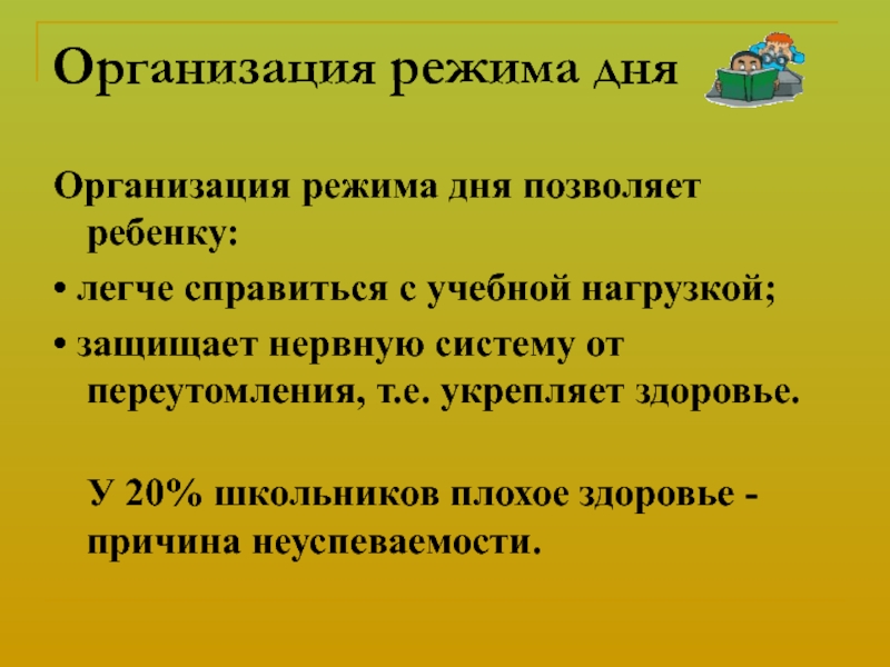 организация режима дня;