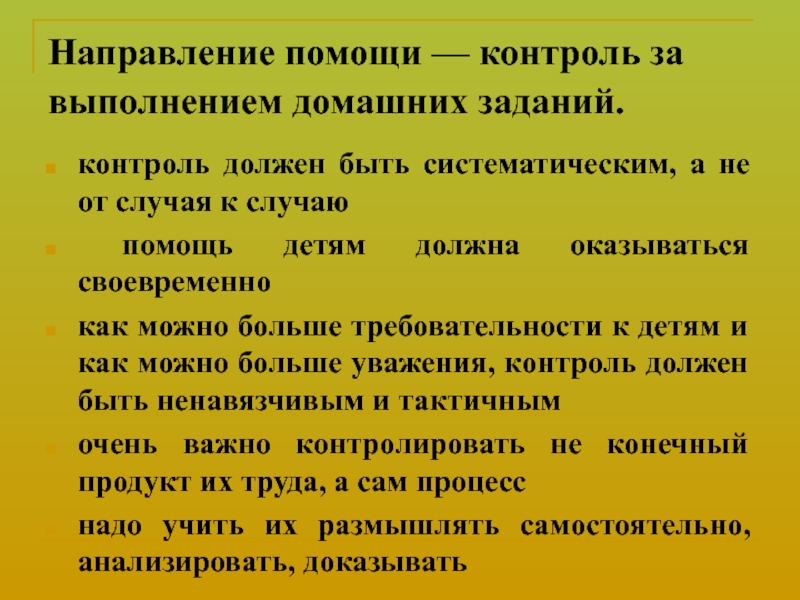 контроль за выполнением домашних заданий;