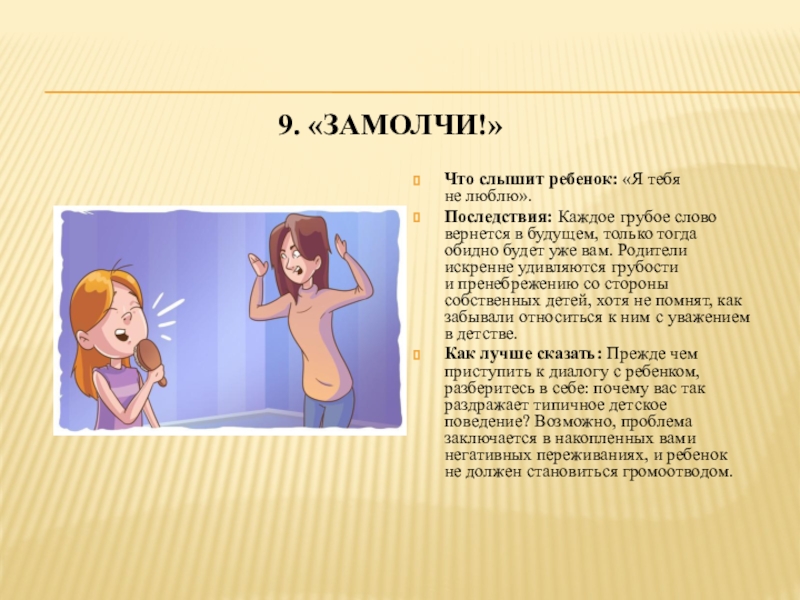 Слайд 29 фраз родителей, которые не самым лучшим образом отражаются на жизни ребенка